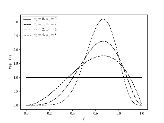 The posterior distribution for given the training examples can be derived by Bayes’ rule. Let the examples be the particular sequence of observations that resulted in occurrences of and occurrences of . Bayes’ rule gives us